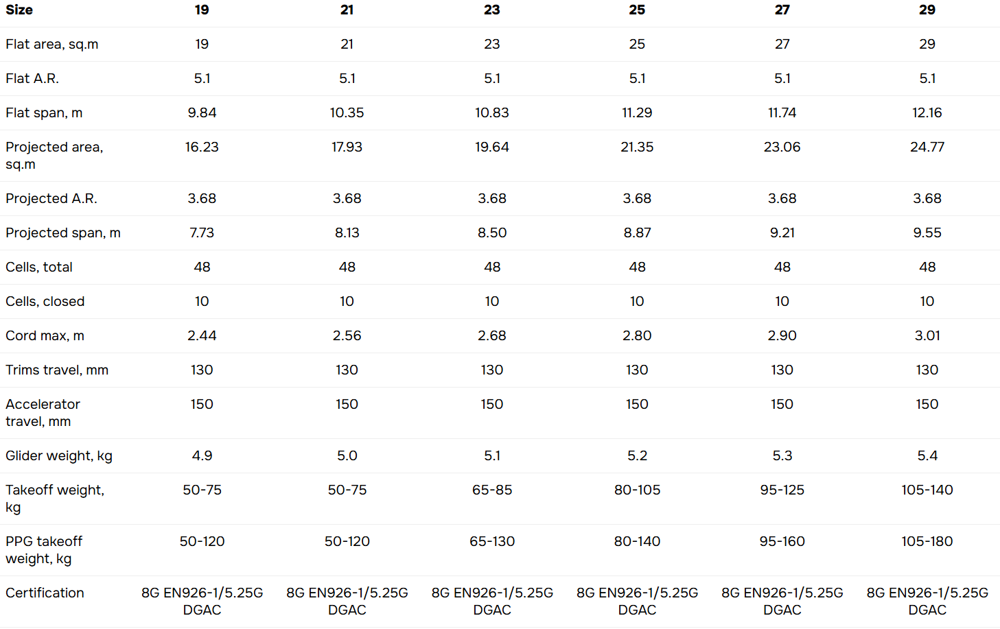 The speedbar and trimmer system extend the acceleration range to the maximum, and the system increases the stability of the glider at maximum acceleration.