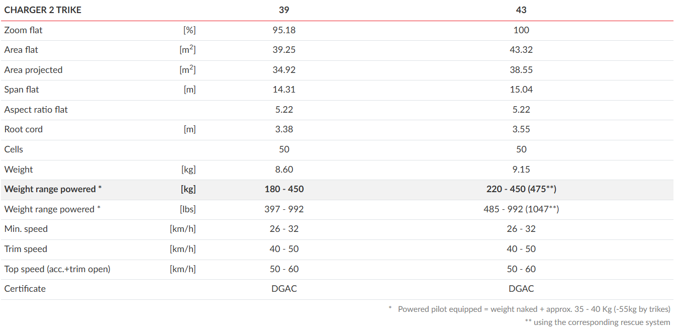 Charger 2 continues on the success story and good reputation won by Charger 1. Just the perfect glider for powered flying. The easy start and flight characteristics have won the hearts of many paramotor pilots. Based on the Charger 2, we again developed the Charger 2 Trike designed for flying with heavy tandem trikes.